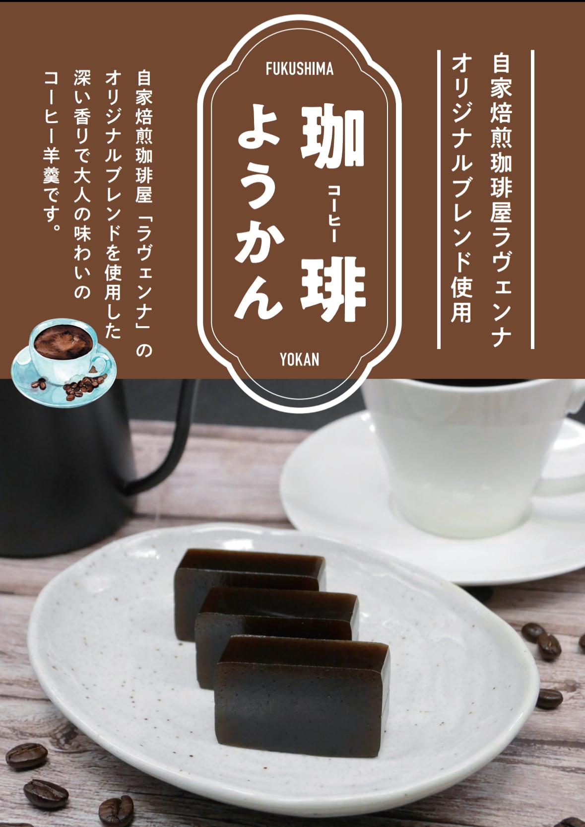 福島県白河市生まれの新しい和菓子、「珈琲ようかん」をぜひご賞味ください。